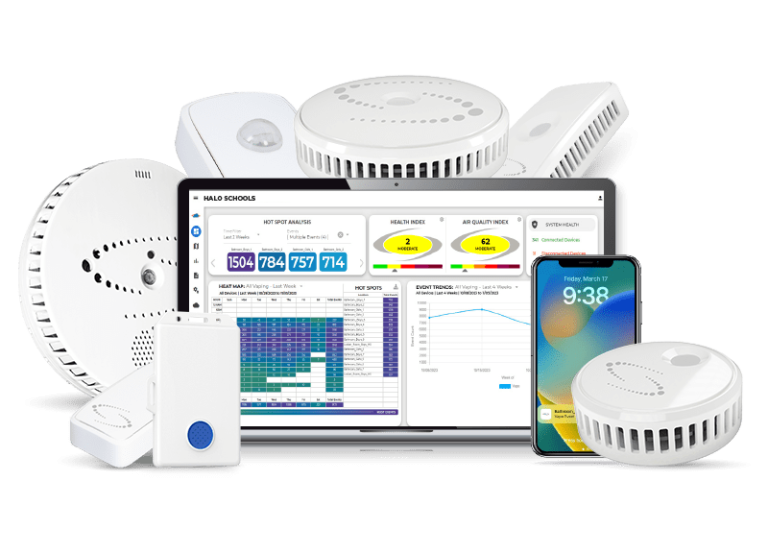 De Halo Smart Sensor is in staat om pistoolschoten te detecteren, luchtkwaliteit te monitoren, vape en THC te detecteren, mensen te tellen, beweging te detecteren, en nog veel meer.