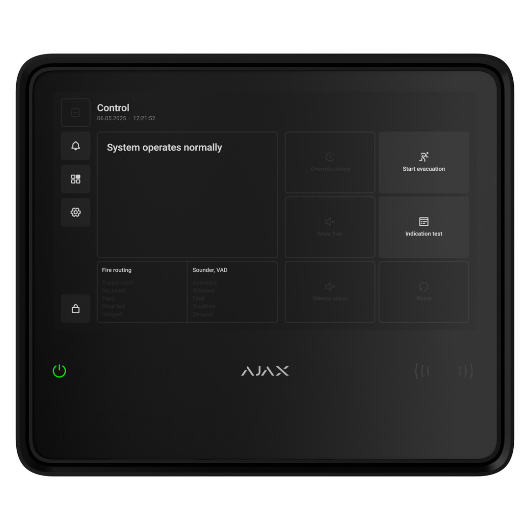 De AJAX EN54 Fire Hub is een draadloze EN54 brandmeldcentrale met geïntegreerde communicatie- en bedieningsmogelijkheden via een groot touchscreen. De Fire Hub voldoet aan de gestelde normen (EN 54) en biedt snelle alarmdoorgifte, intuïtief beheer via apps of lokaal scherm en flexibele communicatie via Wi-Fi, Ethernet en 4G simkaarten.